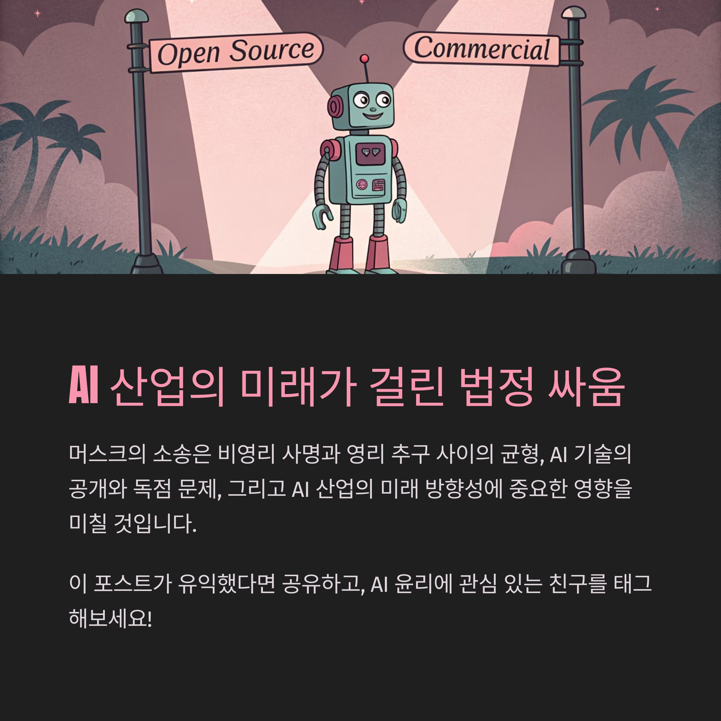 이 소송은 단순한 기업 간 분쟁을 넘어 인공지능의 발전 방향과 통제, 그리고 기술의 공개성과 상업화 사이의 균형에 관한 중대한 질문을 제기합니다. 앞으로의 재판 과정과 결과는 AI 산업 전체에 큰 영향을 미칠 것으로 예상됩니다.