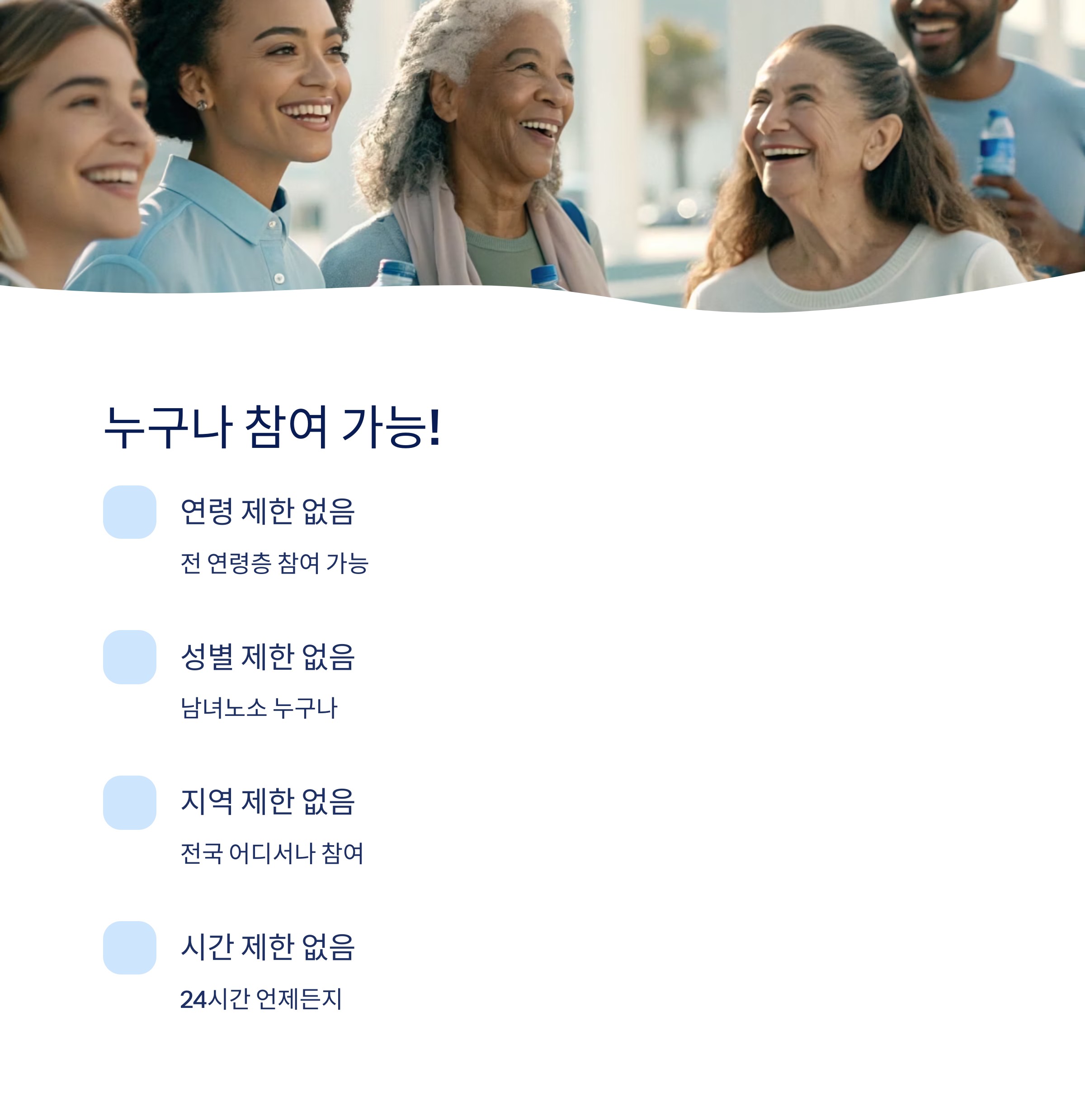 | 연령 제한 | 없음 | 전 연령층 참여 가능 |