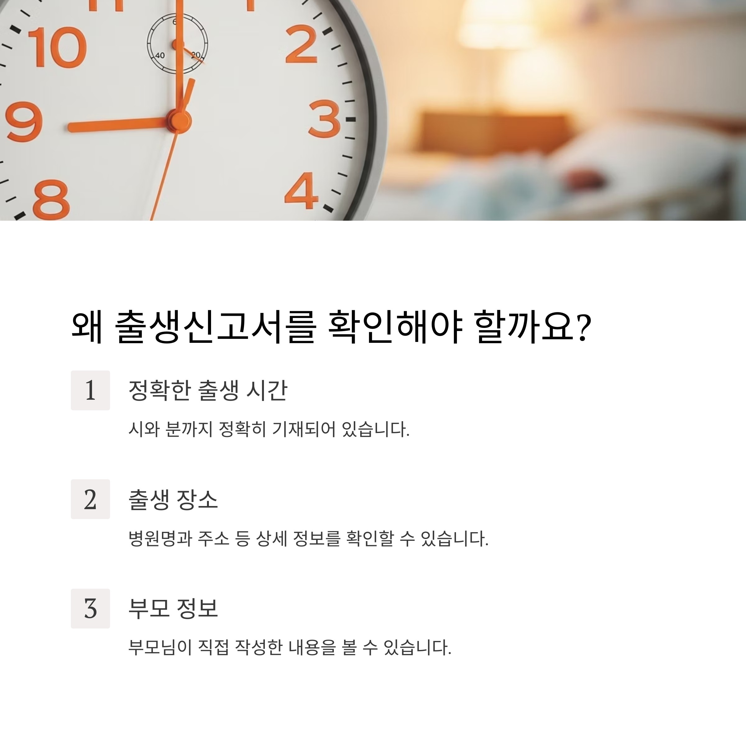 이 과정을 통해 부모님이 직접 작성하신 출생신고서를 열람하고, 정확한 출생 시간과 장소 등의 정보를 확인할 수 있습니다. 30세 이전에 반드시 열람하시기 바랍니다.