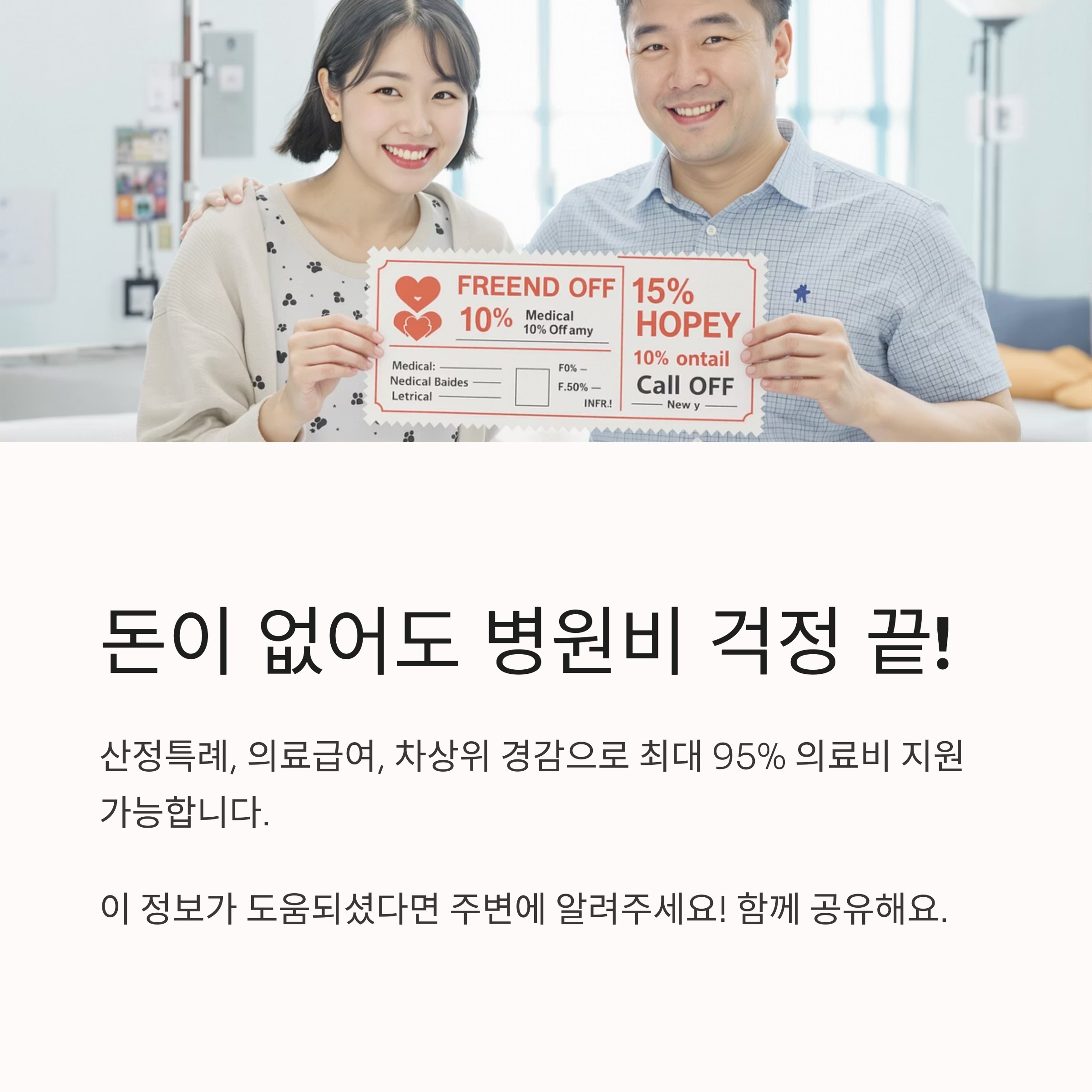 💰 결론: 돈이 없어도 병원비 걱정 끝! 산정특례, 의료급여, 차상위 경감 등 다양한 제도를 적극 활용하면 최대 95% 의료비 지원을 받을 수 있습니다. 2025년부터 더욱 확대된 혜택으로 더 많은 분들이 경제적 부담 없이 치료받으실 수 있습니다. 지금 바로 해당 기관에 문의하여 나에게 맞는 지원 제도를 신청하세요!