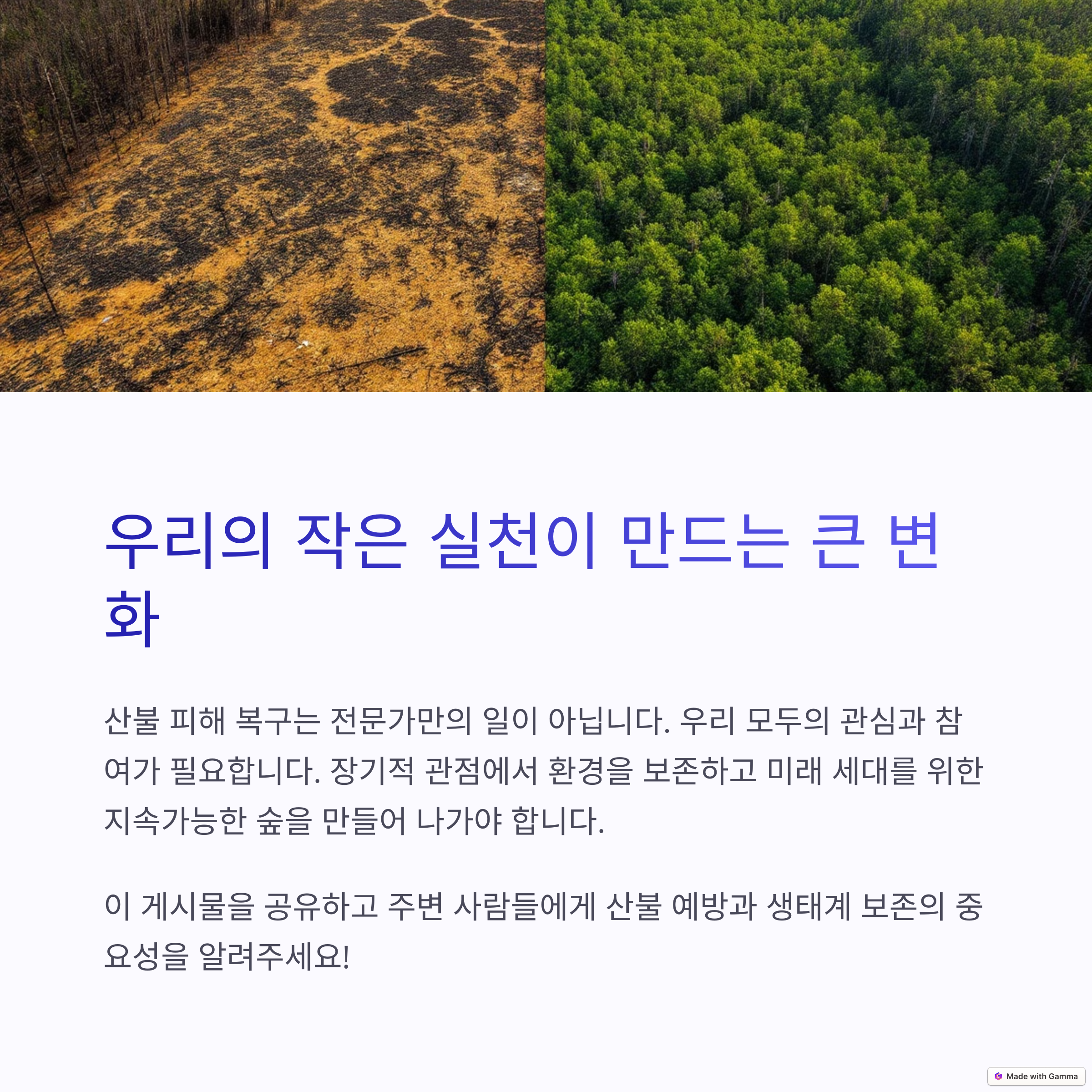산불 복구는 단순히 나무를 다시 심는 것을 넘어서, 전체 생태계의 균형을 되찾는 과정입니다.