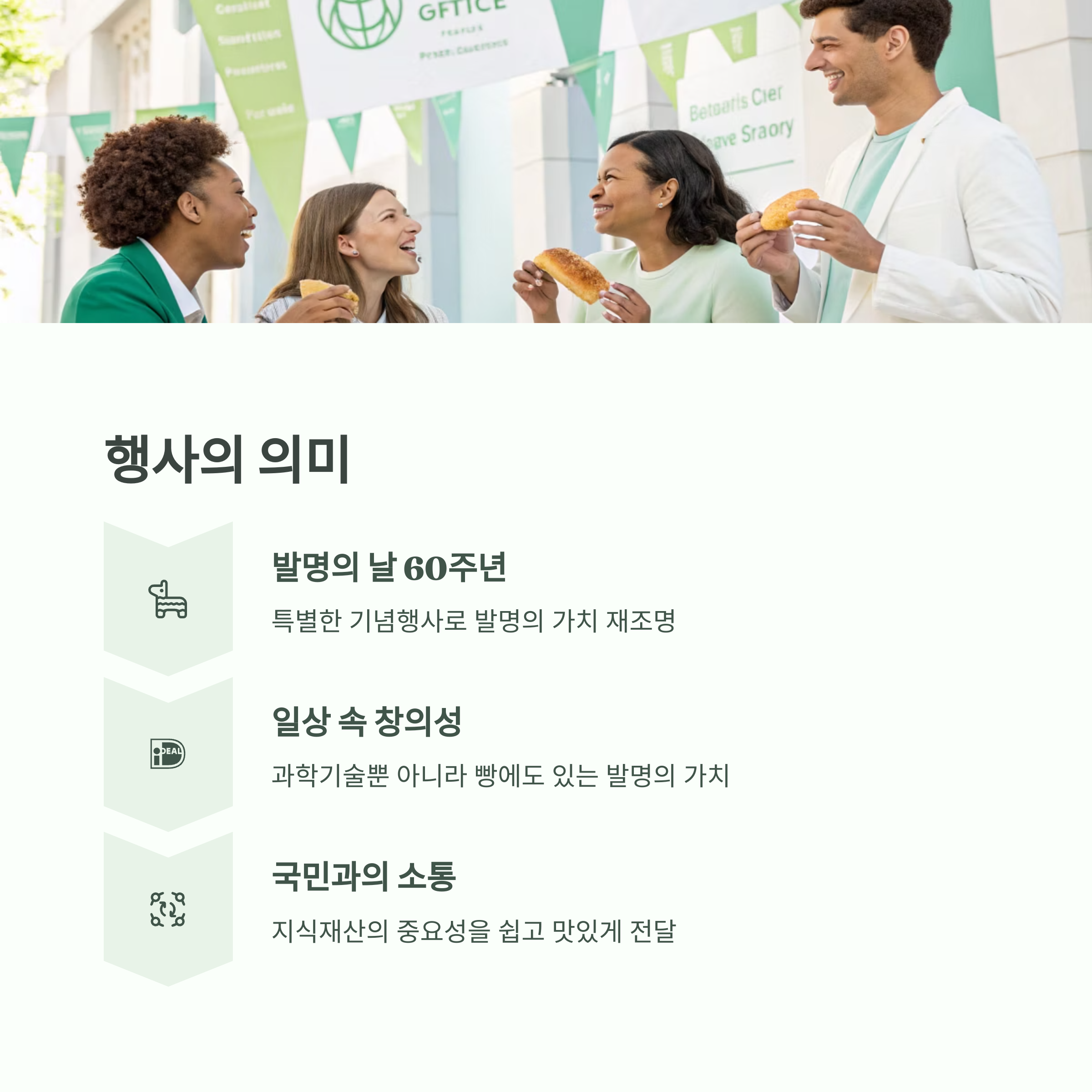 이번 행사는 '발명의 날' 60주년을 기념하기 위해 특별히 기획되었습니다. 발명의 날은 매년 5월 19일로, 우리나라 발명 진흥의 중요성을 알리고 발명가들의 사기를 높이기 위해 제정된 날입니다. 60주년이라는 뜻깊은 해를 맞아 특허청과 성심당이 협력하여 준비한 이번 행사는 발명과 창의성의 가치를 널리 알리는 계기가 될 것입니다.