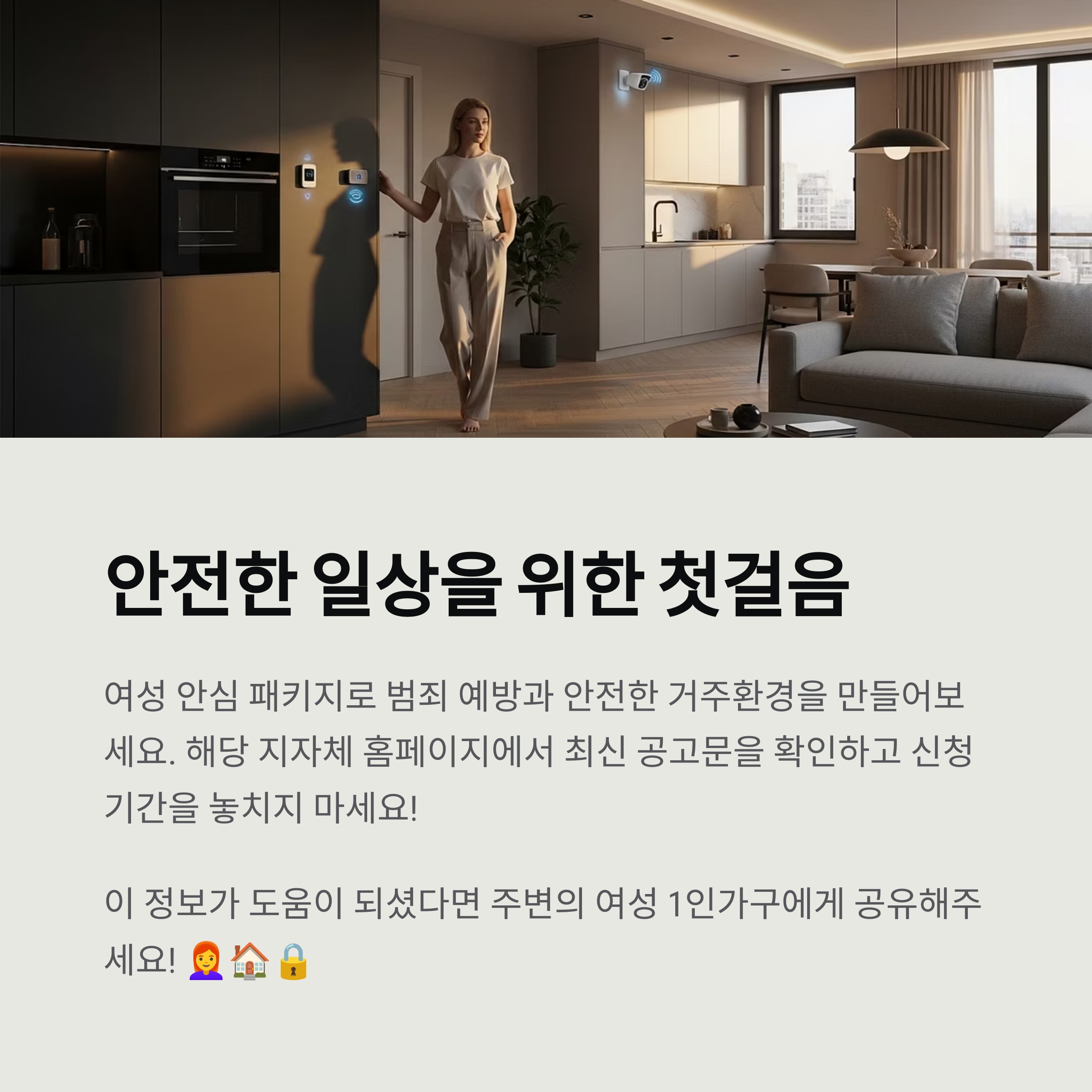 여성 안심 패키지는 여성 1인가구와 범죄 취약계층의 안전을 위해 지자체에서 무료로 제공하는 안전용품 세트입니다. 스마트 홈 카메라, 문열림 센서 등 실용적인 안전용품을 무료로 받을 수 있으며, 최근 경기도에서는 지원 대상이 여성 가구 전체로 확대되고 있습니다.
