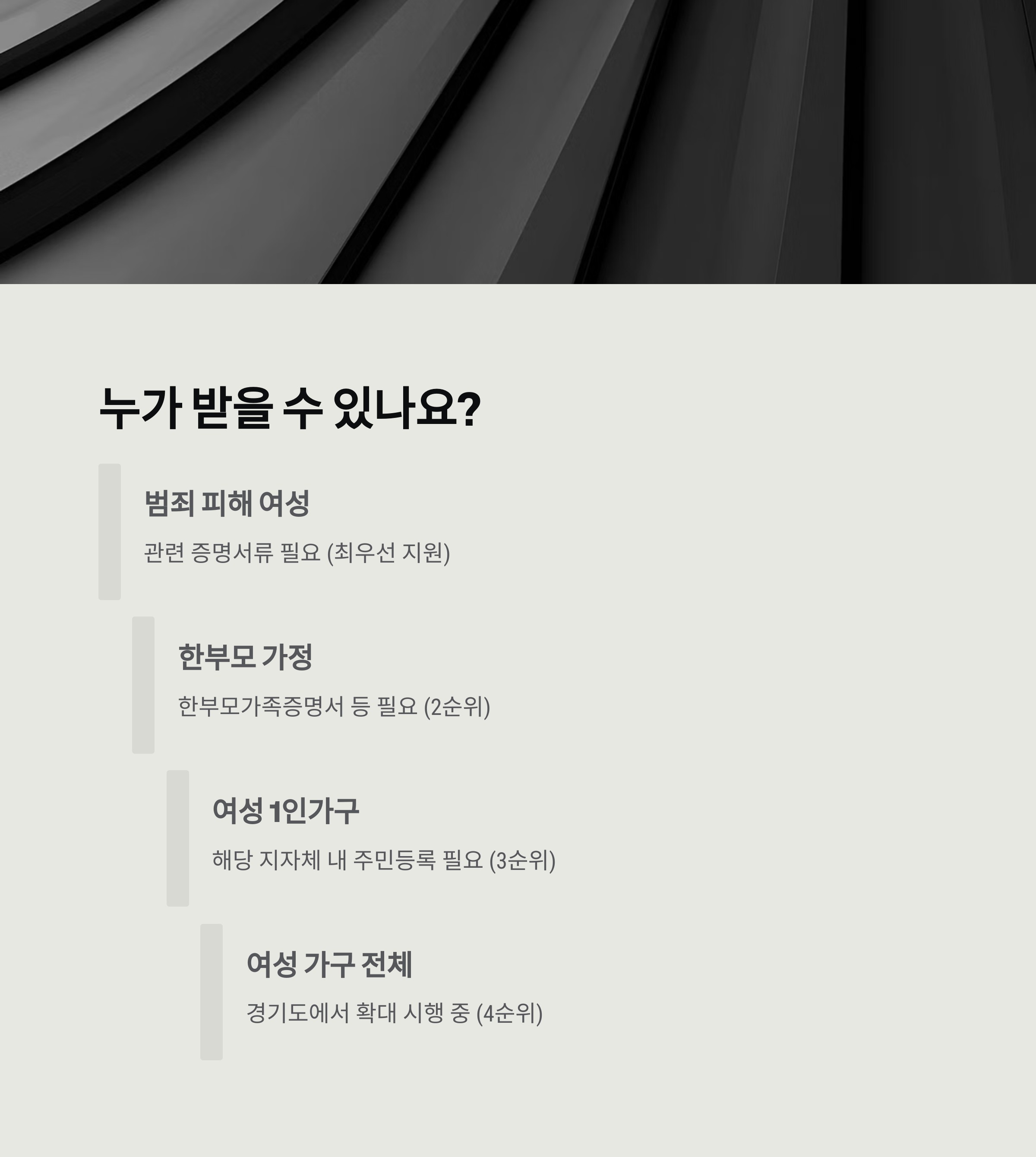 여성 안심 패키지의 지원 대상은 다음과 같으며, 최근 지원 범위가 점진적으로 확대되고 있는 추세입니다.