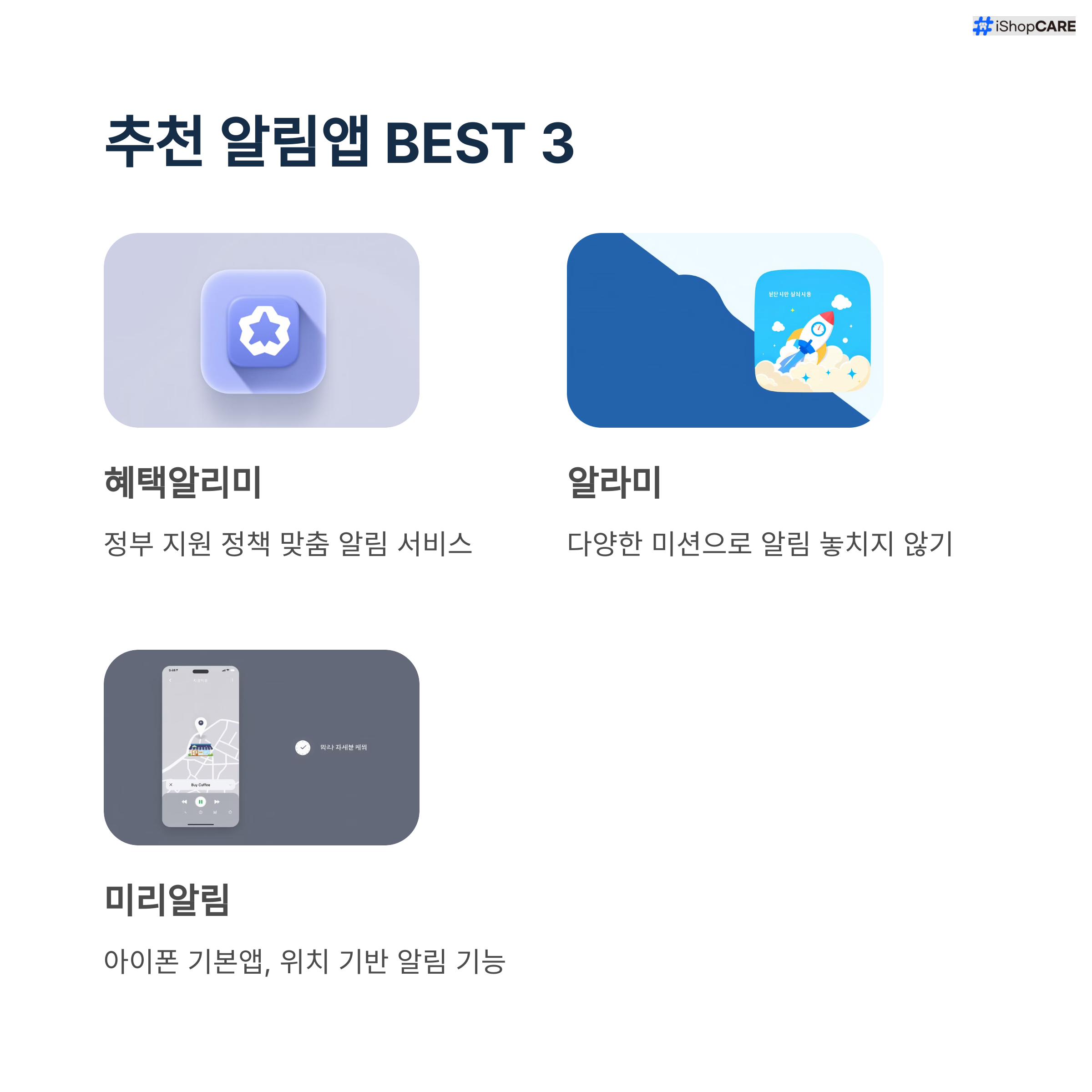 | 복지로 앱 | 정부 복지 정책 통합 알림 제공 | 공신력 있고 상세한 정보 |