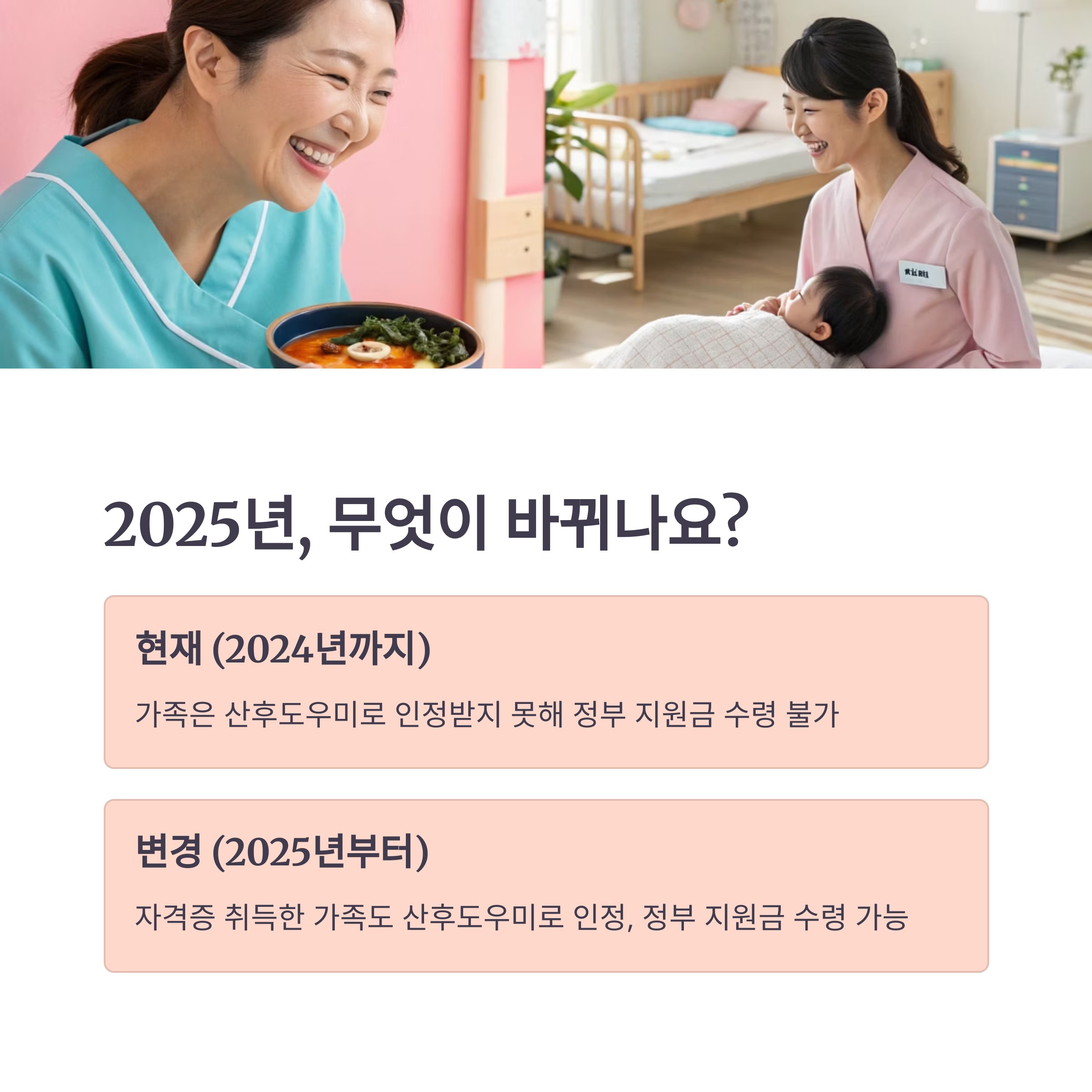 2025년 시행 친정엄마, 시어머니, 형제자매 등 가족이 산후조리 지원금을 받을 수 있는 제도가 시행됩니다.